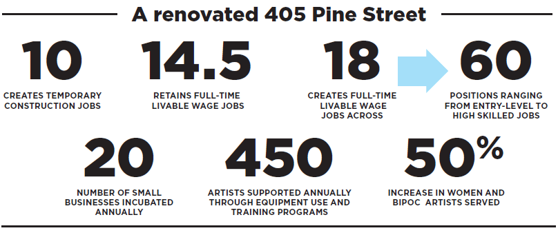 The exciting expansion of art education studios and community space underway at 405 Pine Street will make the arts more accessible for all ages and abilities and strengthen community connections for years to come.